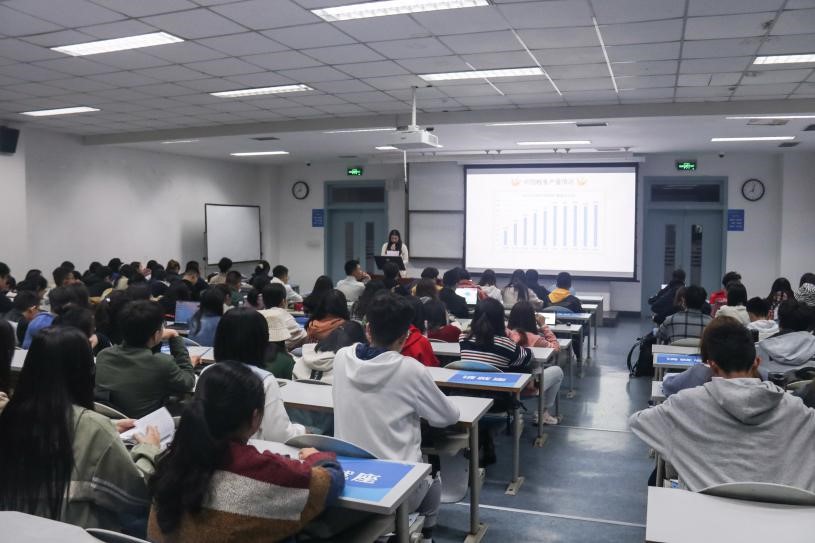团课伊始,蓝艳婷做主题发言。今年世界粮食日的主题是:“齐成长、同繁荣、共持续”,国家粮食安全宣传周则将主题定为:“端牢中国饭碗 共筑全球粮安”。由此可见,粮食安全已经成为了我们必须重视的问题,而节约粮食就是保障粮食安全中十分重要一环。