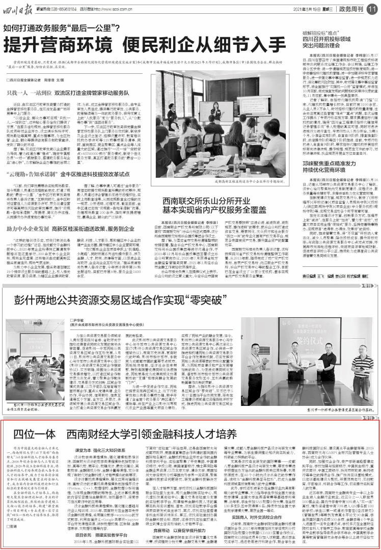 5月19日,《四川日报》以《四位一体,澳门bet356体育在线官网引领金融科技人才培养》为题,报道澳门bet356体育在线官网金融科技人才培养创新模式。