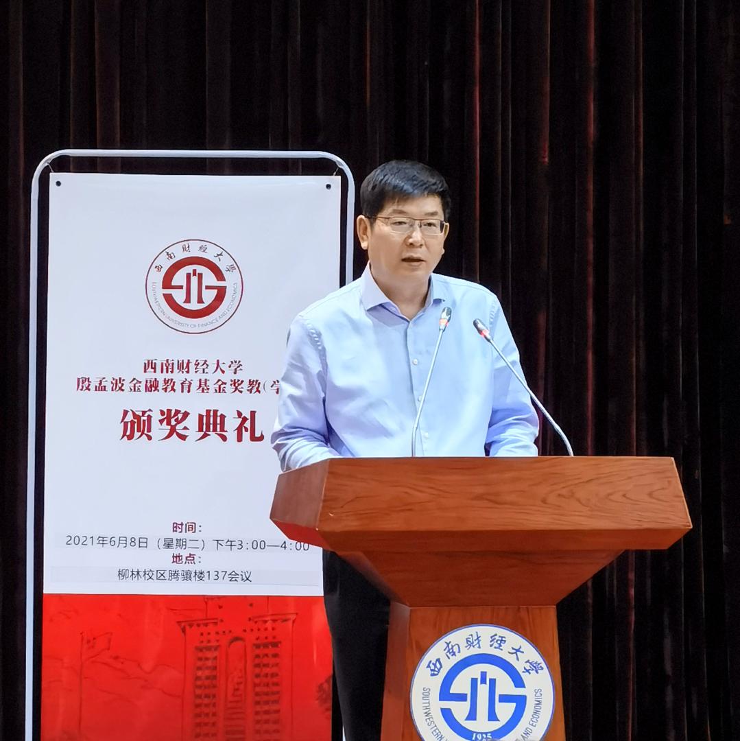 首先,尹庆双副校长代表学校感谢了殷孟波教授及校友对澳门bet356体育在线官网金融教育事业的支持与贡献,并向获奖的2名教师和10名学生致以衷心的祝贺。同时,尹校长勉励师生们要不断创新、不断进步,共同推进金融学科朝着“中国一流,世界知名”的方向发展。