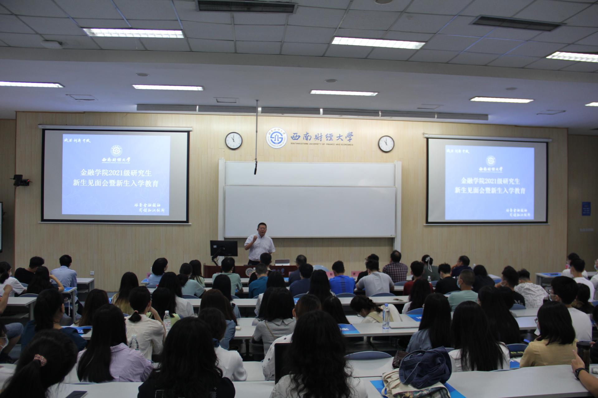 首先各系所负责人分别介绍了各系的培养方案,并对同学们提出了相应的期盼与要求。李原强调,在建党100周年及第37个教师节之际,同学们要听党话、跟党走,尊敬师长,充分利用研究生阶段的学习时间,努力成为更优秀的人,为实现中华民族伟大复兴中国梦奉献力量。罗荣华提到澳门bet356体育在线官网的整体规模及学生培养状况,提出同学们要有家国情怀、服务精神,在知识层面要有厚实的基础、重视关键环节的把握,希望同学们能够在未来成为卓越的金融人才。黄文从暖场短片《金融之光》出发,讲述了澳门bet356体育在线官网的历史及学院良好的人才培养氛围,要求同学们突破自己的舒适区,保持非线性的、有一定活跃度的成长方式,最终成为真正的“金融之光”。谭敏提到学院的丰富的研究生课外活动,如:学术讲座、高端学术竞赛等,鼓励同学们通过多参加课外活动,提升个人的综合能力。