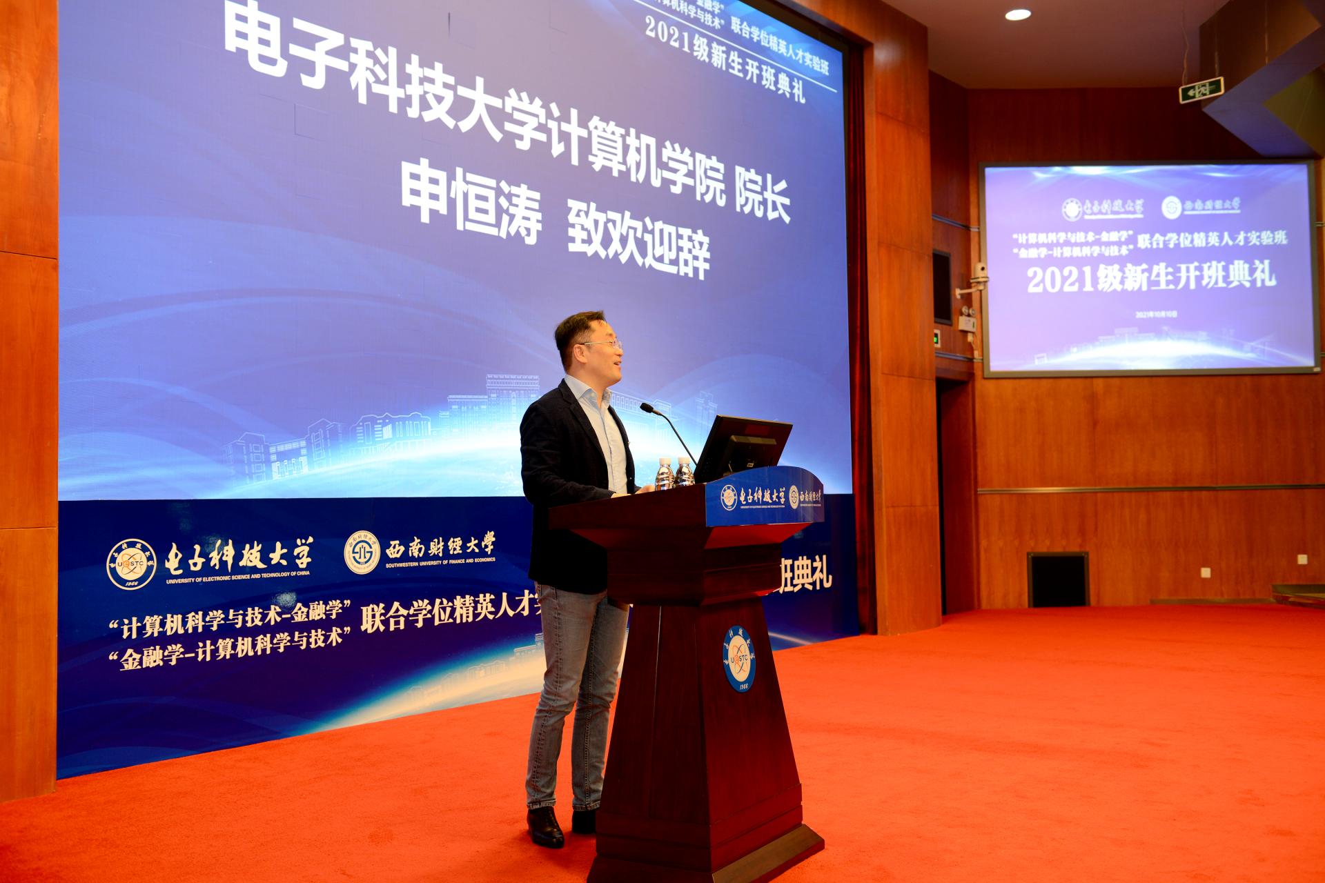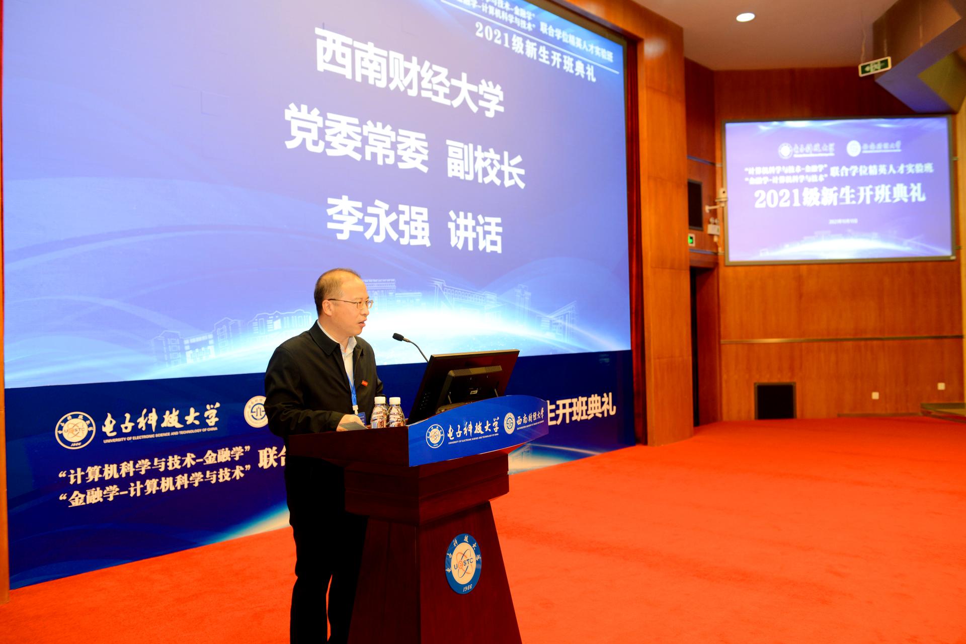 10月10日,我校与电子科技大学“金融学-计算机科学与技术”联合学位精英人才实验班开班典礼在电子科技大学举行。副校长李永强、电子科技大学副校长杨晓波出席典礼。两校教务处、学生工作部,我校澳门bet356体育在线官网、电子科技大学计算机学院负责人,教师代表、辅导员和两届实验班同学参加开班典礼。