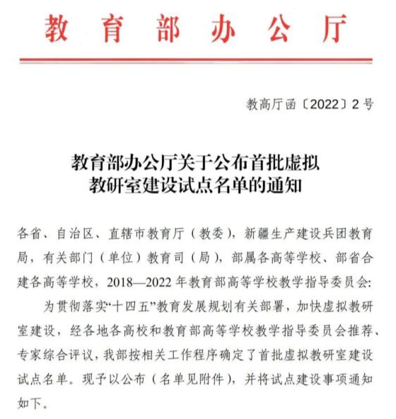 虚拟教研室是“智能+”时代新型基层教学组织建设的重要探索,是全面提高教师教书育人能力、构建高质量高等教育体系的必然要求和重要支撑。