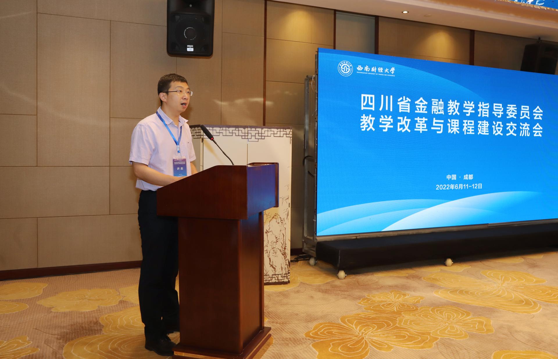 交流会环节,四川省金融教指委副主任委员、电子科技大学经济与管理学院副院长李平教授,四川省金融教指委副主任委员、四川农业大学经济学院院长蒋远胜教授、澳门bet356体育在线官网张桥云教授和四川大学经济学院金融系副主任邹瑾副教授先后分别以“期货和期权交易虚拟仿真实验”、“以新文科为引领,建设‘知识-能力-价值’三位一体的《金融学》课程”、“专业课课程思政教学建设和教材建设的思考与探索——商业银行经营管理为例”和“混合式教学的探索与实践”为题发表主题演讲。