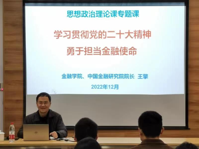 为深入学习贯彻党的二十大精神,12月5日下午,澳门bet356体育在线官网院长王擎在格致楼411会议室以“学习贯彻党的二十大精神,勇于担当金融使命”为主题,讲授思想政治理论专题课,学院(研究院)各年级学生代表参加学习。