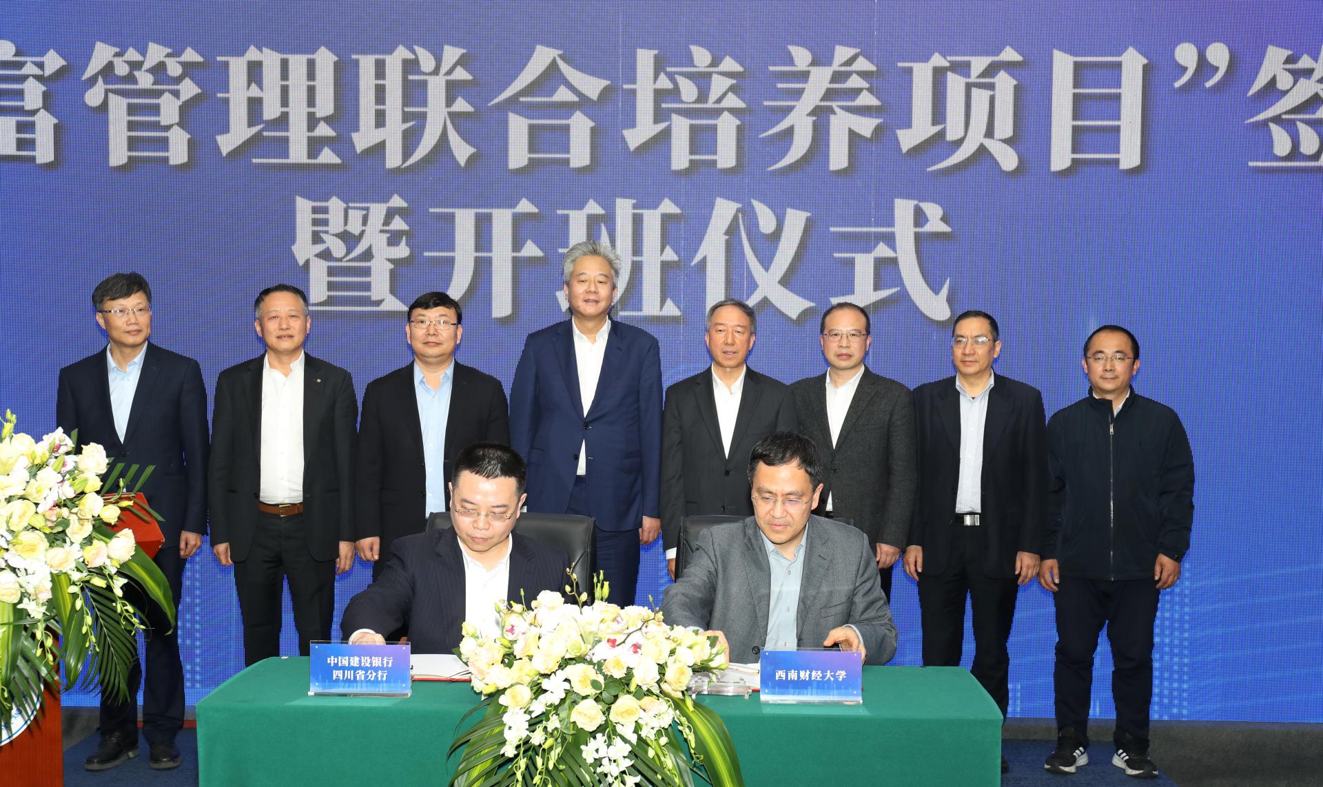 3月10日下午,澳门bet356体育在线官网—中国建设银行四川省分行“财富管理联合培养项目”签约暨开班仪式在柳林校区举行。建行研修中心(研究院)常务副主任(副院长)彭钢、组织管理研修院副院长(资深副经理)陈梅春、综合团队处长李昊,中国建设银行总行私人银行部副总经理、建行研修中心私人银行教研中心副主任梅雨方,中国建设银行四川省分行行长王晓永、副行长严斌,建行研修中心西南研修院院长梁世斌、常务副院长丁红、副院长许军平,我校党委副书记、校长卓志,党委副书记、副校长李永强,党委常委、副校长史代敏,澳门bet356体育在线官网、教务处、西部商学院等负责人出席仪式,李永强主持仪式。