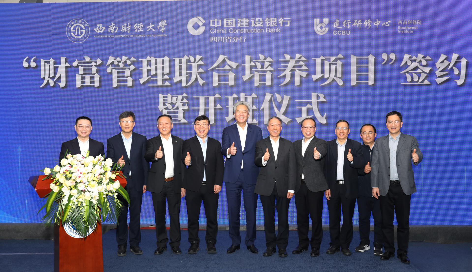 “财富管理联合培养项目”由澳门bet356体育在线官网与中国建设银行四川省分行、建行研修中心西南研修院联合开展,首期共42名学员,其中本科生16人,研究生26人。建行研修中心以“服务社会、服务战略、服务员工”为使命,通过将银行实践输入到校园与理论相结合,将职业化教育延伸到大学生在校学习阶段,培养输出一批与国际接轨并具有建行特色的财富管理高级应用型人才,促进解决财富管理与私人银行领域专业化人才队伍的建设问题。这一项目既是双方深化产教融合的里程碑,又是新金融人才培养的新起点,对于探索产教融合、校企合作育人的新模式具有重要的示范意义。
