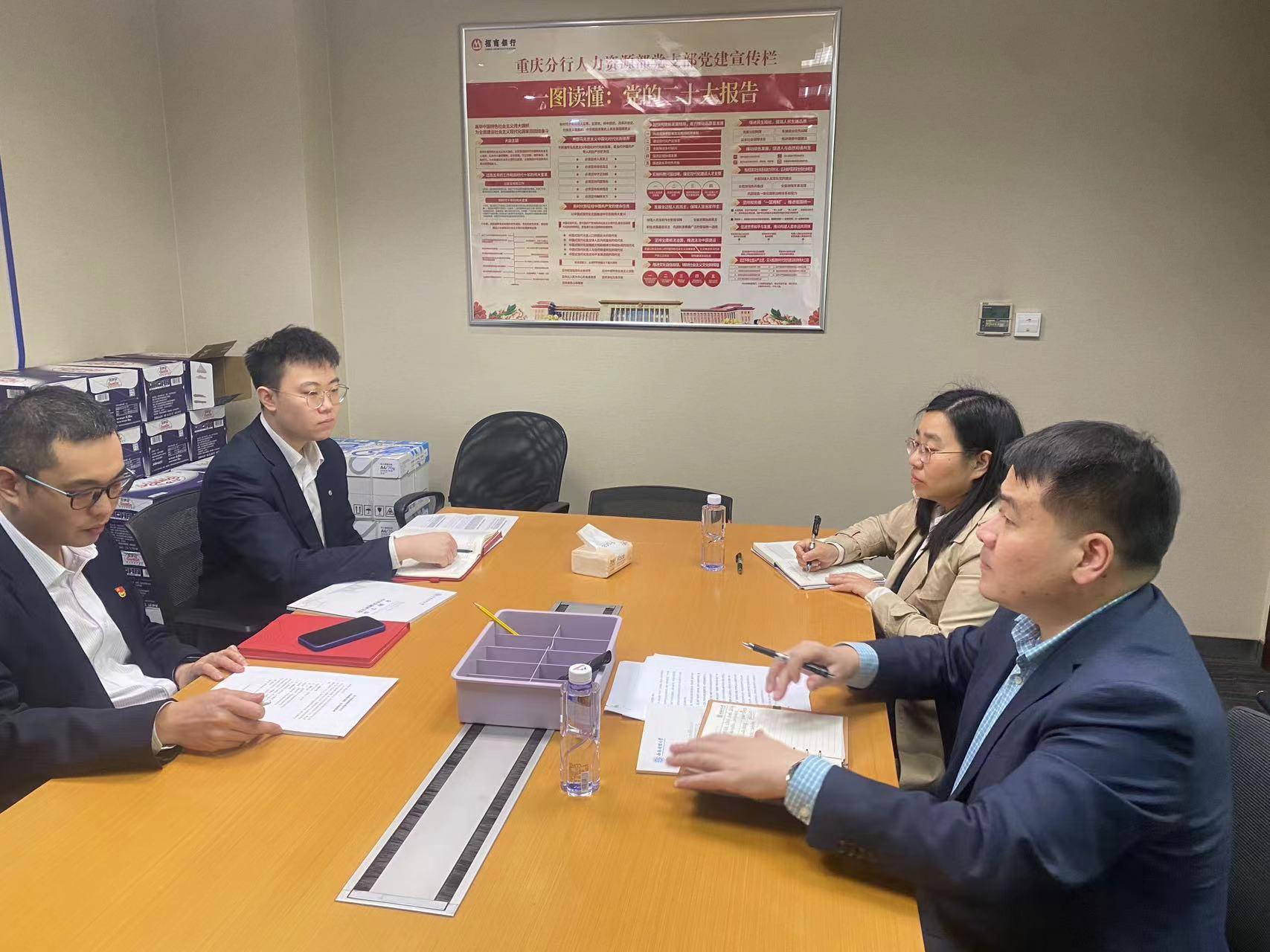 3月29日下午,工作组与招商银行重庆分行人力资源部总经理助理黄俊、人力资源部招聘HR汪益民进行座谈交流。黄俊介绍了招商银行从传统商业银行向数字银行转变过程中的人才需求变化和校园招聘的新特点,双方就共建学生实习基地等内容达成共识。