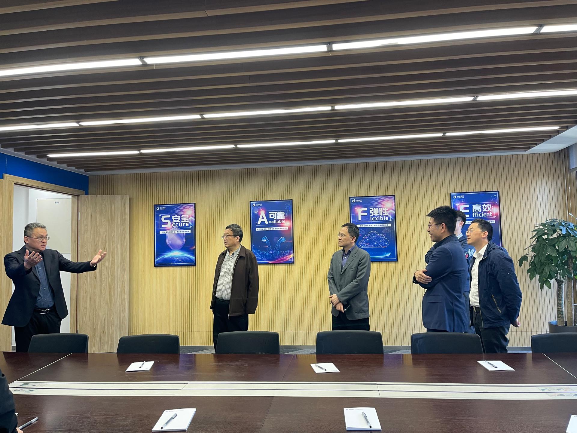 随后,王擎院长一行与中信百信银行党委副书记、监事长罗刚,科技产品部、金融科技部负责人周北春,人力资源部总监赵宇,运营管理部总监王叶涛及西财校友座谈交流。罗刚介绍了百信银行“为百姓理财,为大众融资,依托智能科技,发展普惠金融”的战略定位和肩负的中国银行业数字化转型发展试验田的使命,并详细介绍了西财校友在百信银行的职业发展情况。赵宇向工作组分享了百信银行的校招计划,并从专业需求、人才培养、福利待遇、实习生计划等方面全面介绍了百信银行的人才队伍建设。