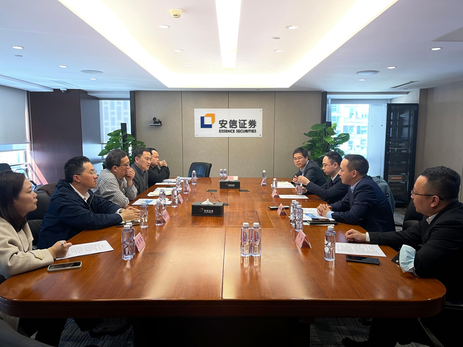 4月7日下午,工作组赴安信证券股份有限公司,党委书记、董事长黄炎勋热情接待了刘锡良、王擎院长一行。国投人力资源服务有限公司总经理助理陈超,安信证券投行委执行委员、投行董事总经理彭邓华,国投融资租赁有限公司董事总经理张弛,国投泰康信托有限公司资管部投资总监肖伟波等国投系企业相关负责人参与了座谈。座谈中,工作组了解了校友在国投系各企业的职业发展状况,听取了校友对学校学院在人才培养、学科建设、校友工作等方面的意见与建议,并与各企业就人才需求、信息技术和金融科技发展情况、校企沟通机制等议题进行了深入交流,在建立实习基地、建设从本科到硕士的梯度培养机制方面达成了共识。
