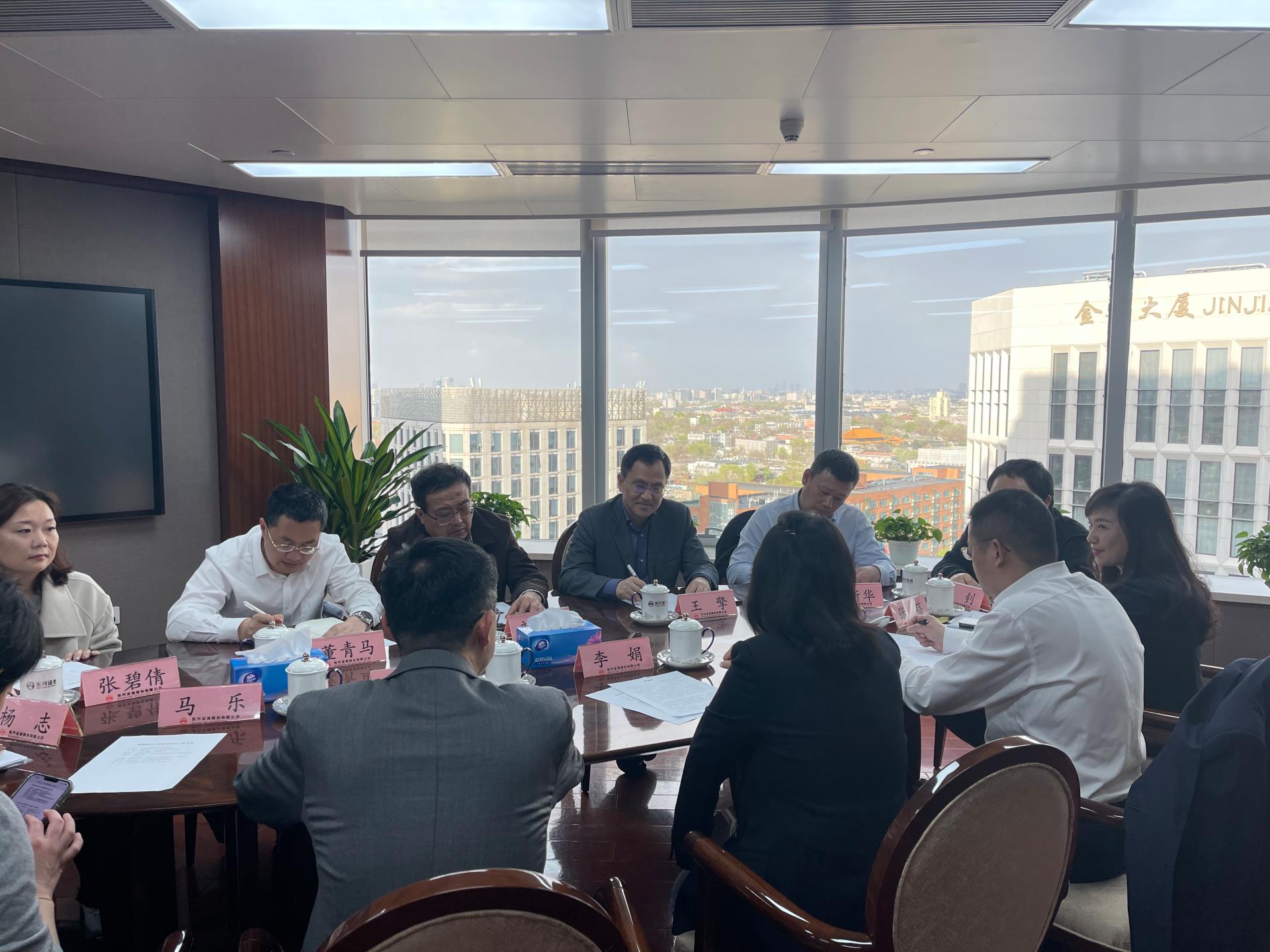 随后,王擎院长一行赴东兴证券,与党委书记、董事长李娟,党委委员、董事、副总经理张军等交流座谈。李娟介绍了东兴的发展历程、业务情况、人才需求等,并就建立实习基地进行了部署。人力资源部总经理张蓓介绍了公司人才结构和成熟的人才培养体系,指出东兴证券人才队伍呈现高学历、年轻化的特点,并详细介绍了财大校友在东兴证券的职业发展情况。双方围绕课程设置、案例式教学、实习基地、人才输送等议题进行了深入探讨。此外,工作组还听取了校友对学校课程设置、人才培养、职业规划和就业指导等方面的建议。
