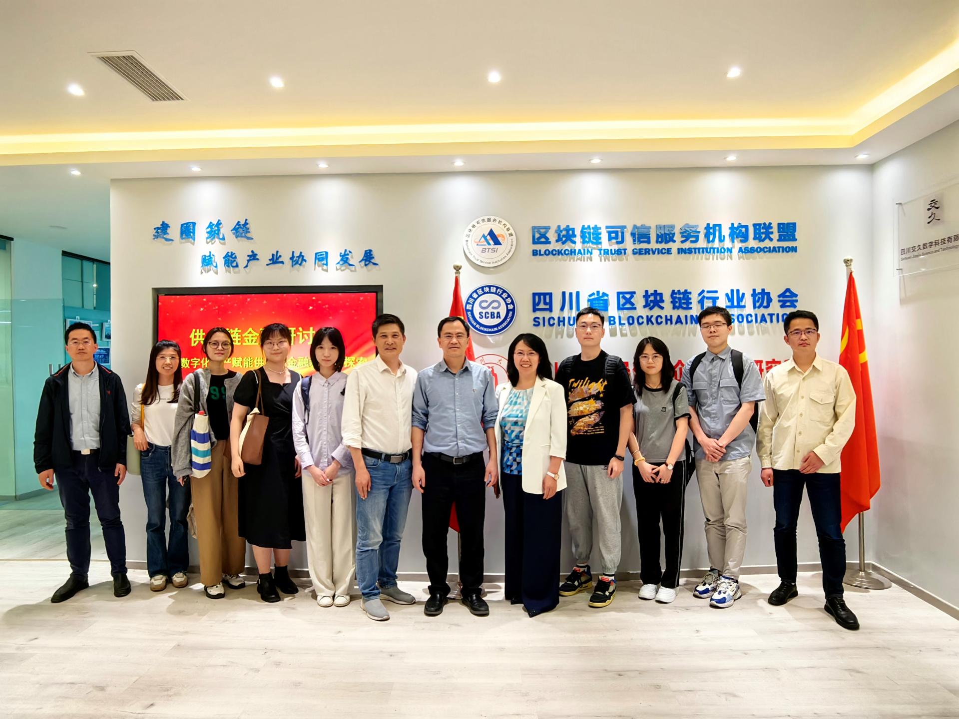 为加强金融科技的产学研融合,深入落实学校“新财经”发展战略,持续推动金融科技学科发展,2023年4月12日,澳门bet356体育在线官网院长王擎一行到访四川省区块链行业协会,以 “数字化资产赋能供应链金融新模式探索” 为主题对供应链金融展开了研讨。澳门bet356体育在线官网教师董青马、郭海凤、尚玉皇、徐秋华、宋易珈、完颜瑞云、程欣,及澳门bet356体育在线官网部分研究生一同参与了研讨。此外,四川省区块链行业协会还组织了四川港投云港、商通时代数科、金网络、兴业银行、成都交易所集团、国网四川电力、国家电网英大信托、中企云链、攀枝花钛网、四川乡发数科、壹石新科等企业负责人参加了此次座谈。