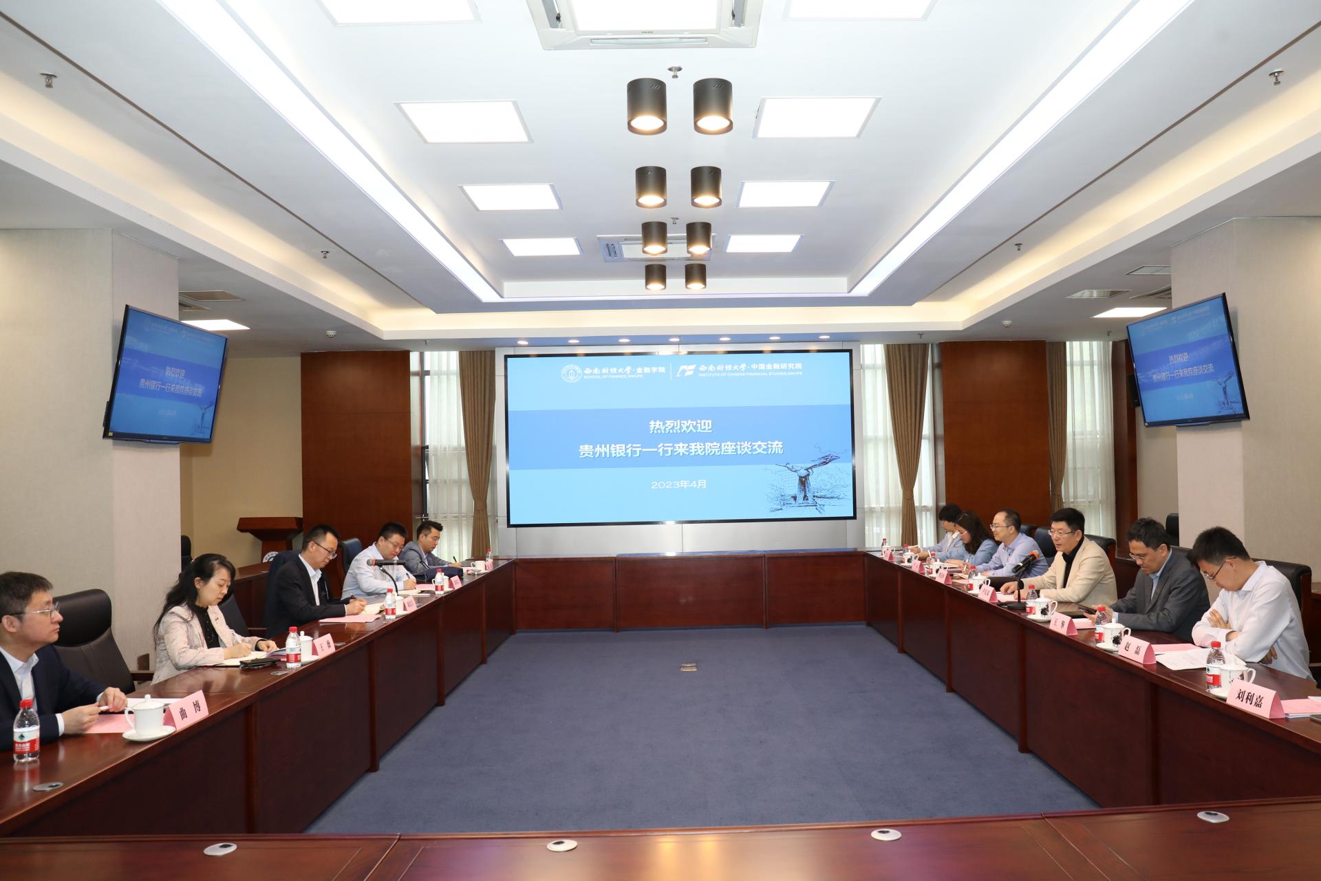 4月14日上午,贵州银行董事会秘书周贵昌一行到澳门bet356体育在线官网调研,就博士后联合培养、合作研究、产学研协同创新和学生实习实践等方面进行交流。贵州银行行长助理徐培文、人力资源部总经理王薇和董事会办公室副主任邵骏等相关人员参与调研。学校党委常委、副校长尹庆双主持调研座谈会,澳门bet356体育在线官网院长王擎、组织人事部副部长赵磊和中国金融研究院常务副院长罗荣华等参加座谈。
